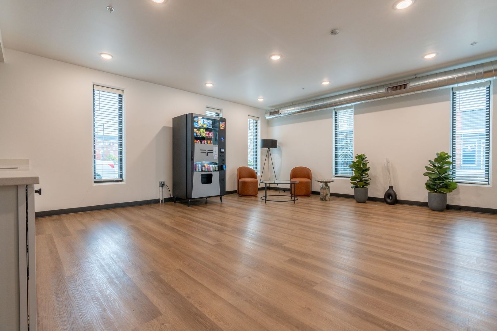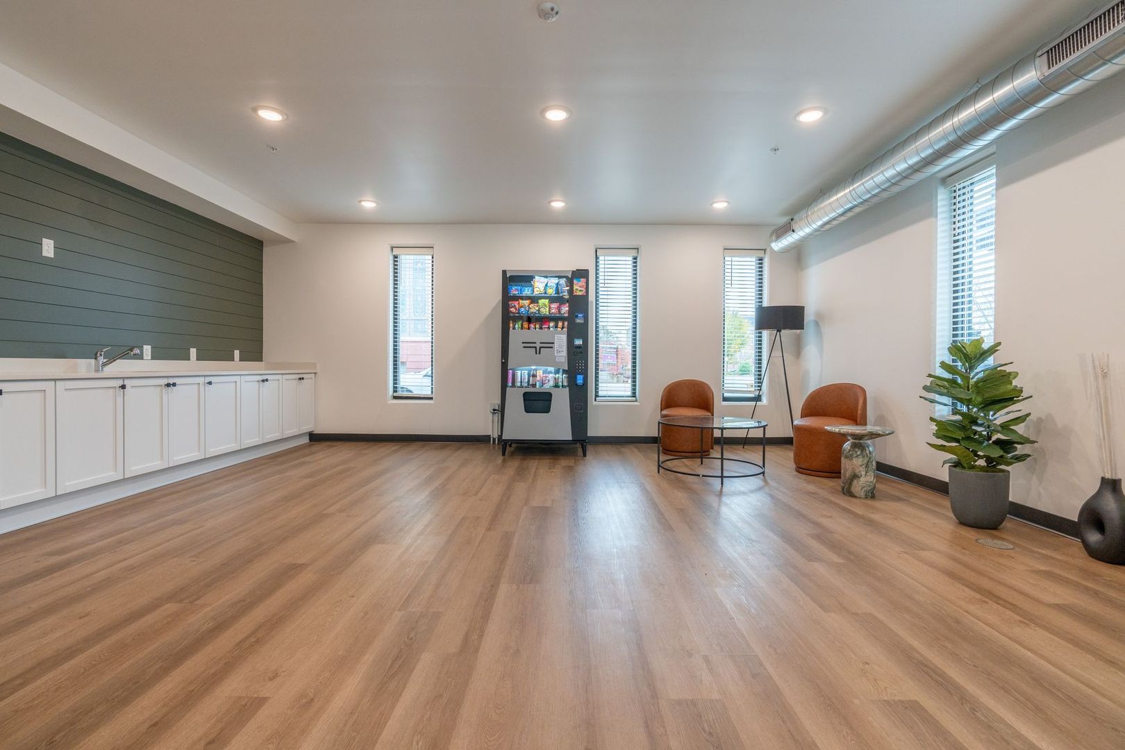 The Delaware is not just an apartment, it's a community. Enjoy the community room, complete with a coffee machine and lounge seating, perfect for socializing with neighbors.